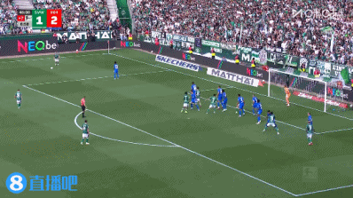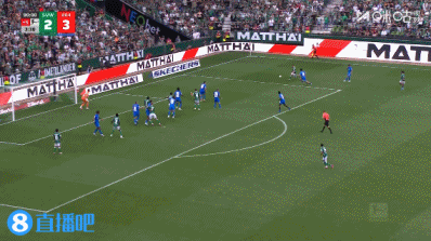 第76分钟,弗莱肯出击失误没碰到球,施密特面对空门将球轻松送进!2-3!少打一人的不莱梅追回一球!↓